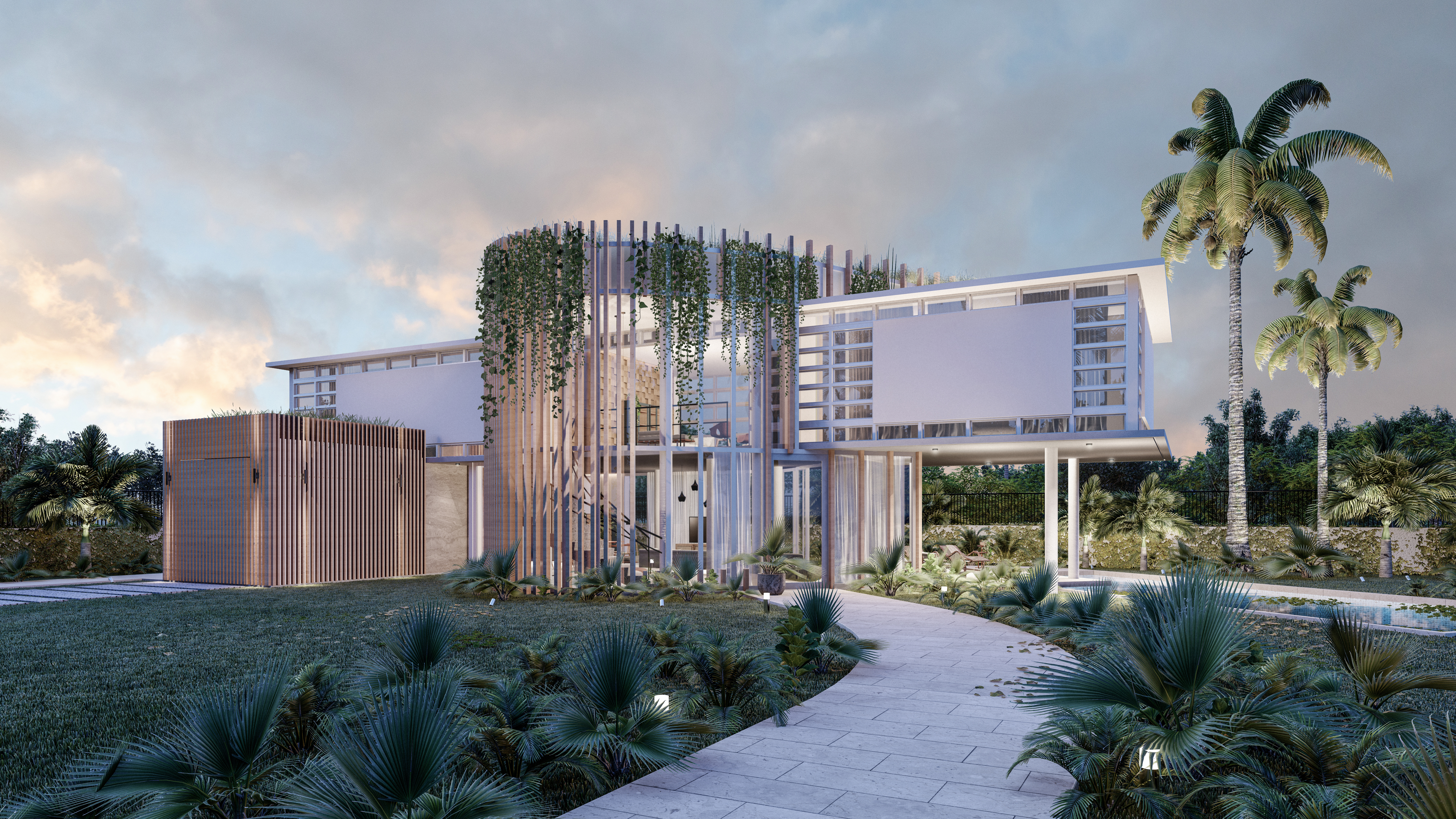 This contemporary reinterpretation of Rufus Nims' iconic "Jetsons House" in Morningside balances mid-century optimism with modern sensibilities. The design integrates lush vertical greenery and natural materials, blending the home seamlessly into its tropical surroundings. Elevated on slender supports, the structure celebrates openness and light, creating an inviting interplay between interior and exterior spaces.